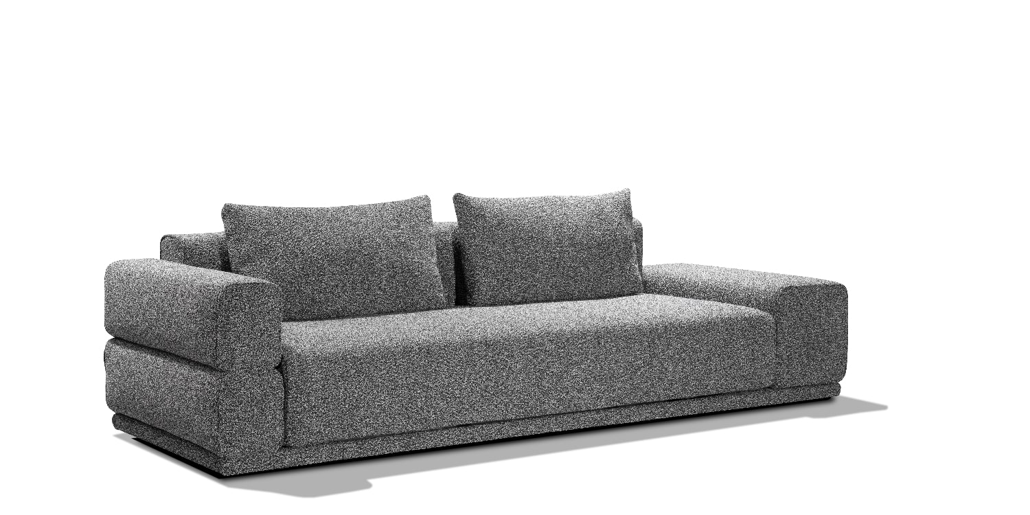 One of a kind, patented. The opening takes place through a mechanism that brings the seat forward with a rototranslating movement and the subsequent lowering of the backrest that transforms the sofa into a comfortable bed. This version allows the creation of sofas with a base. Possibility of inserting a small container box underneath, ideal for stowing pillows and bed linen. Orthopedic bed base with electro-welded mesh